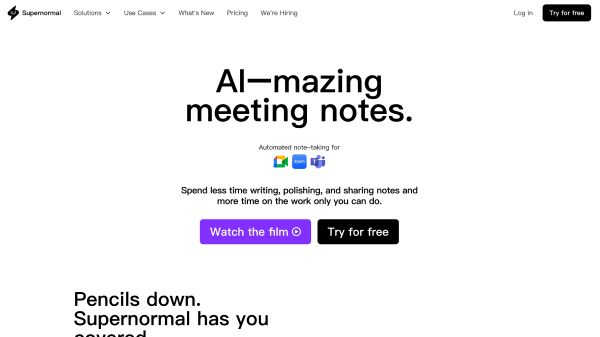Meet Supernormal, an innovative productivity tool that's more than your everyday app. With Supernormal, achieving your set tasks becomes a breeze owing to its highly intuitive user interface and eye-catching, yet simple layout. It's your personal task manager, designed to optimize your workflow and ensure that you stay on top of your game. Its user-centric approach means that it matches perfectly with your work style, offering robust features that keep you organized and in control. Whether you're ticking off a shopping list, coordinating a big project, or planning a weekend getaway, Supernormal is the go-to app that makes it all... well, supernormal. Ready to transcend into a new realm of efficiency? Let Supernormal show you the way!