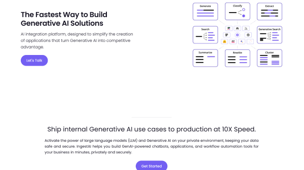 IngestAI is a digital frontier companion designed to revolutionize your journey in the realm of Artificial Intelligence (AI). This cutting-edge technology brings you one step closer to the future. IngestAI simplifies seemingly complex AI concepts by providing an easy-to-use, intuitive platform. With solutions developed to cater to individual and business needs, IngestAI is your answer to transcending the digital boundaries of today. Whether you need to process large amounts of data, develop an AI-based project or integrate AI into your business framework, IngestAI is your go-to platform.