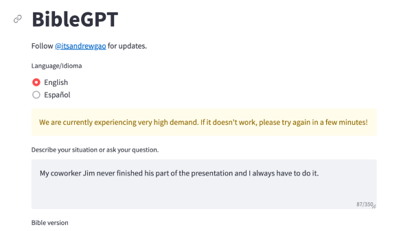 Being a devout Christian, I've found this BibleGPT to be a fantastic tool for understanding and interpreting the Bible. Its easy-to-use interface and cleverly designed features have greatly improved my bible study experience. The interpretations given by the AI are insightful and have often given me a new perspective on familiar scriptures.