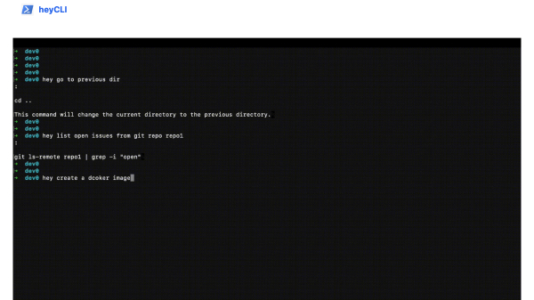 Step into the realm of coding revolution with HeyCLI - your new command-line interface companion. Impressively lightweight, flexible, and boasting an intuitive design, HeyCLI will streamline your coding journey. Whether you’re embarking on your first coding venture or an experienced developer looking for a quicker way to input complex commands, HeyCLI’s got you covered. It transforms tricky coding tasks into effortless, rapid fire actions, thus saving your crucial time and mental capacity. It's not just another addition to your coding toolbox, but rather a power drill that's going to make holes in your toughest programming challenges.